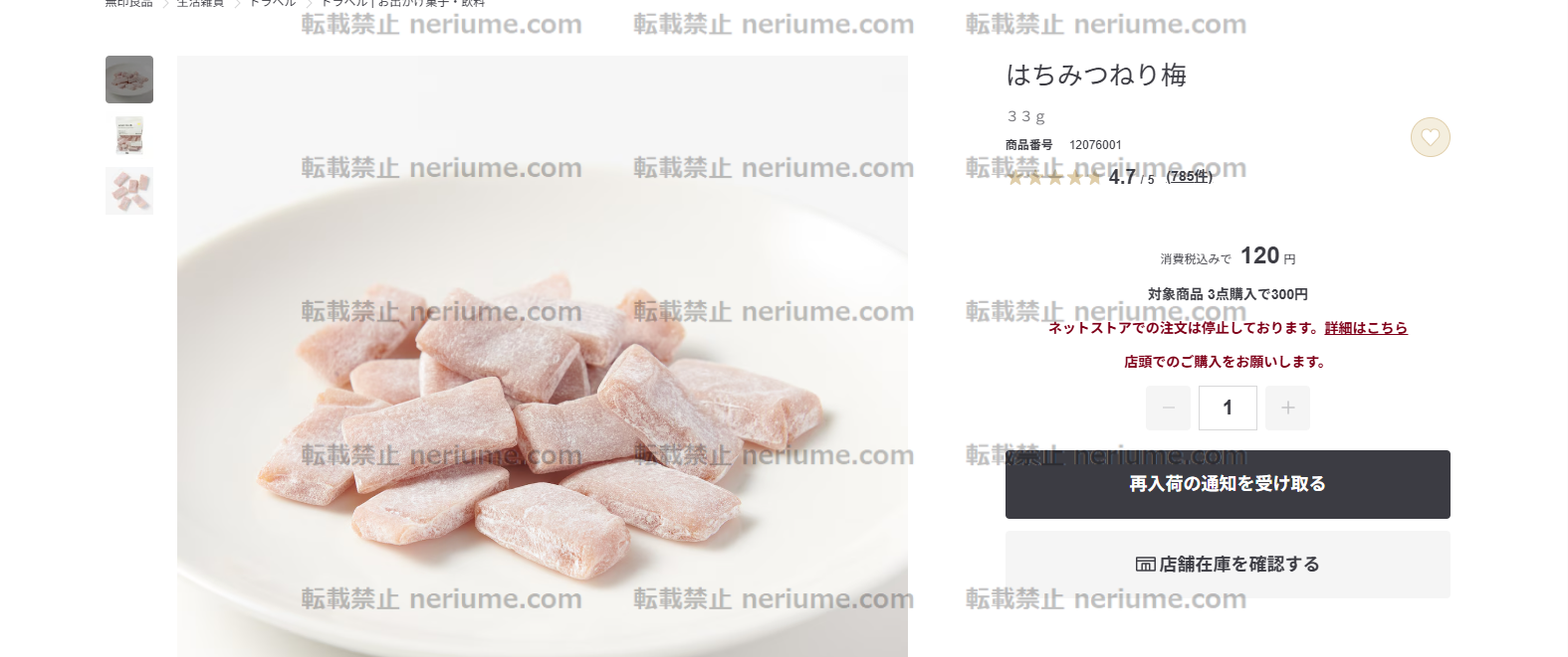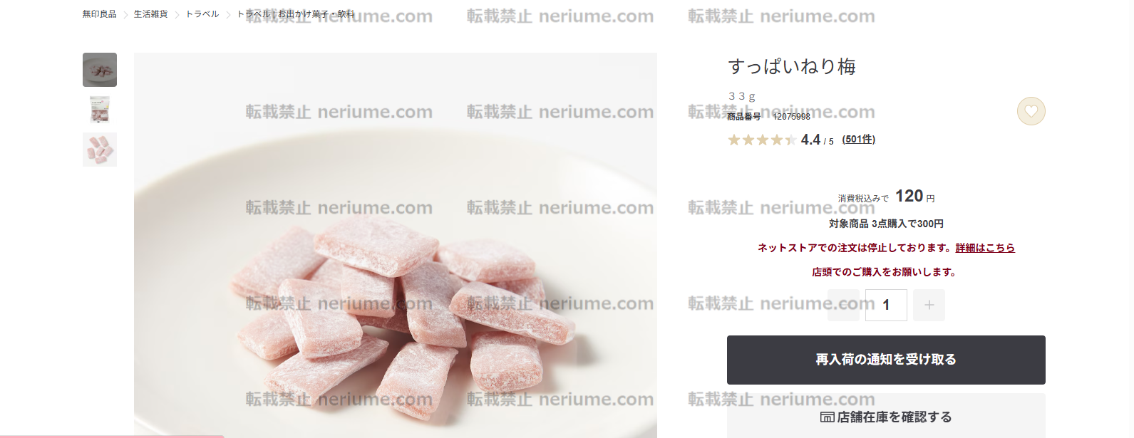 無印良品週間には大量に買います。無印良品=ねり梅です。