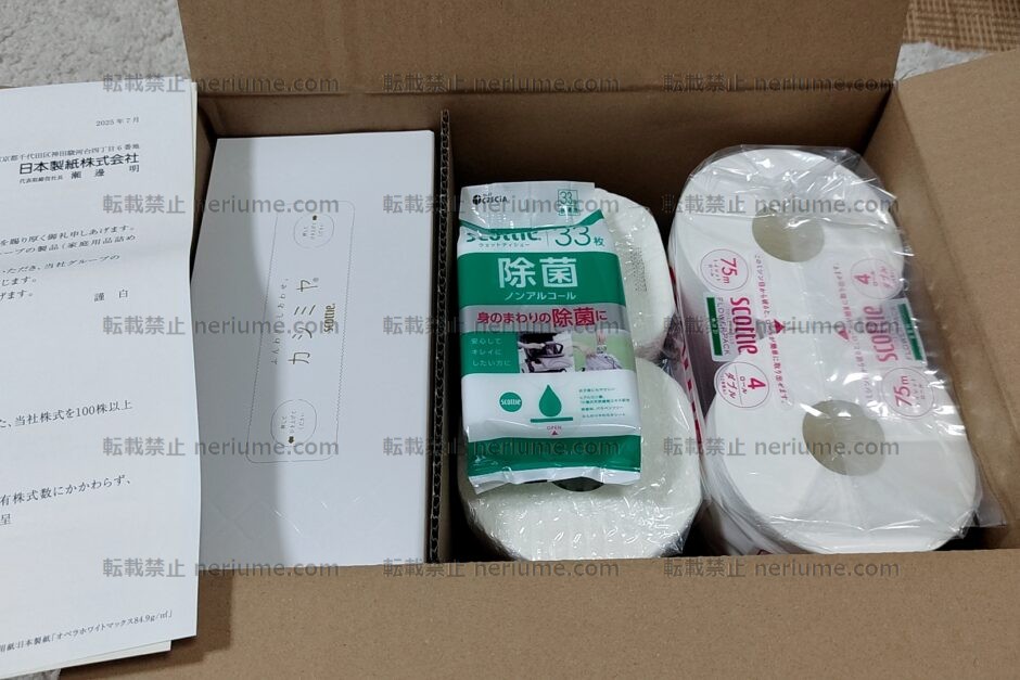 日本製紙の株主優待は、スコッティブランドの日用品が中心で、生活必需品として非常に助かる内容です。